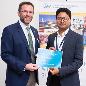 The GW Office of Innovation and Entrepreneurship awarded innovation prizes to three participating poster teams, which included $1,000 to pursue proof of concept work and support through the office’s innovation and entrepreneurship training program. The winners were: